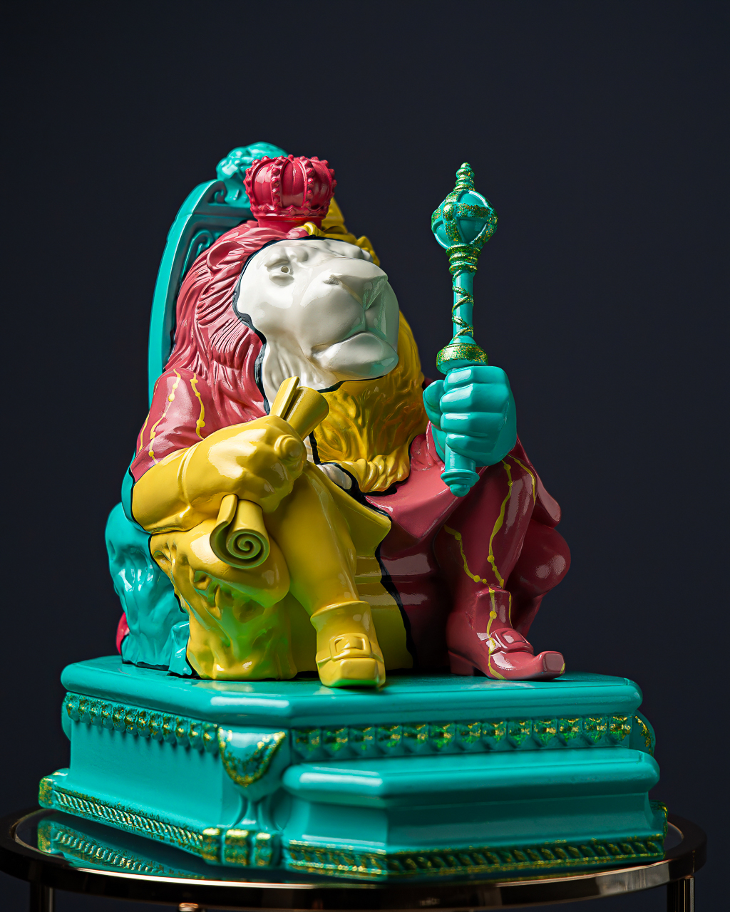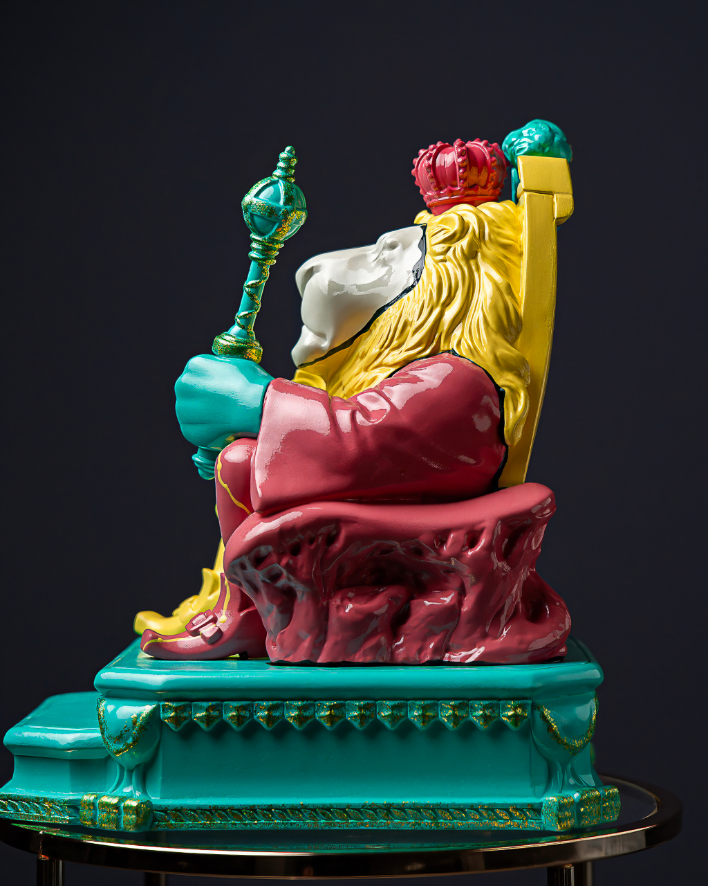 The “Leo – Constellation Etudes” statuette captures the majesty and confidence of the zodiac sign. Seated on a throne and holding a scepter, the lion is portrayed in a bold artistic style with expressive sculptural details and vibrant contrasting colors. An impressive décor piece and a perfect gift for admirers of powerful symbolism and distinctive design.